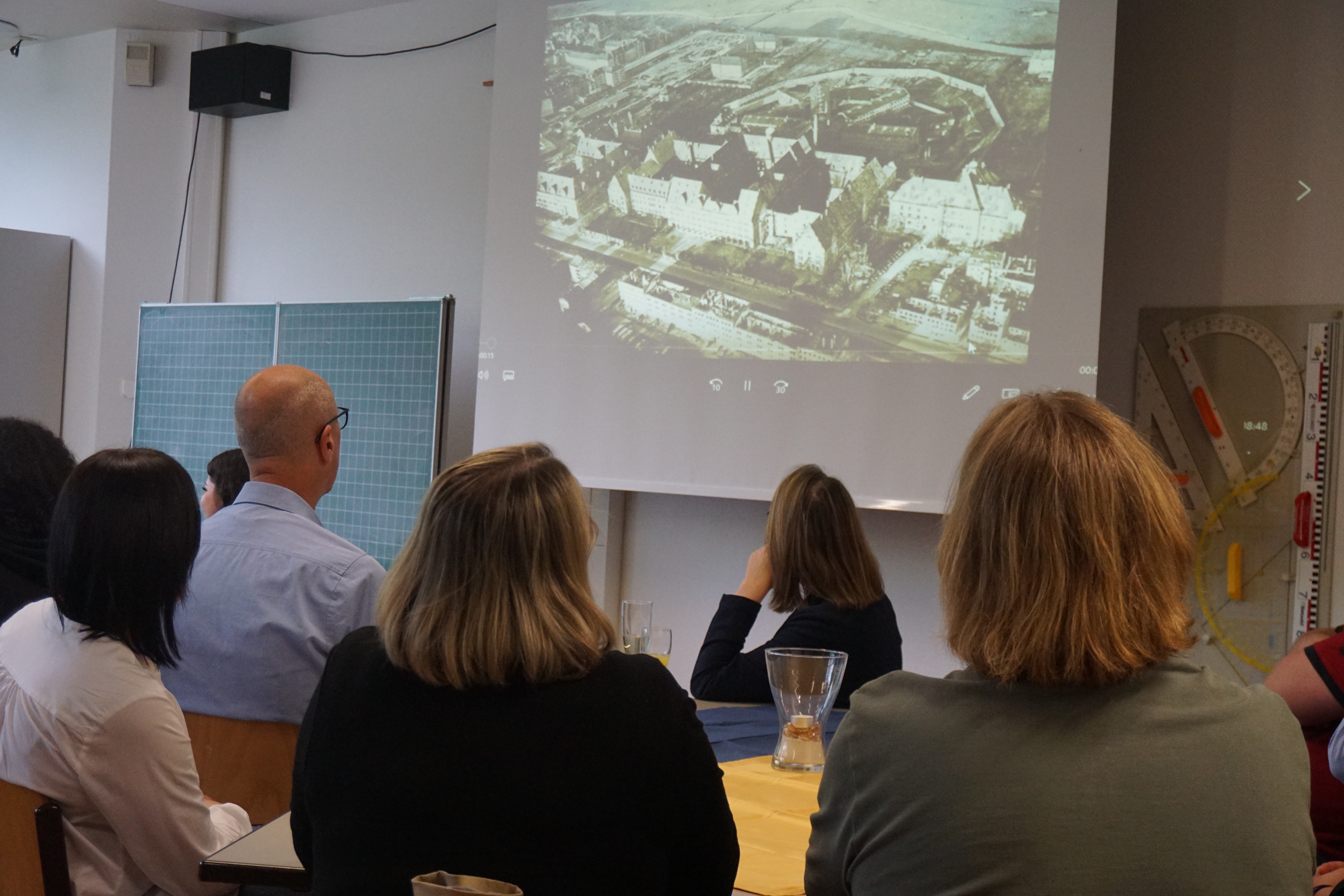 Die Klasse 3 AEL aus Meran mit den begleitenden Lehrpersonen Hildegard Pircher und Hermann Hofer weilte vom 16. bis zum 20. Mai in Ansbach, die Gäste wurden am Ankunftstag von einem Teil des Kollegiums bei einem gemeinsamen Abendessen begrüßt. Am Dienstag stand dann ein umfassender Exkursionstag in Nürnberg an. Dabei erkundete man im Rahmen eines „Geländebegehung“ genannten Rundgangs der Nürnberger Vereins „Geschichte für Alle“ am Vormittag das Nürnberger Reichsparteitagsgelände, während am Nachmittag eine Führung zur Geschichte Nürnbergs „Vom Mittelalter zu den Menschenrechten“ in der Innenstadt auf dem Programm stand. Danach verliefen sich dann Lehrkräfte und SchülerInnen in der Nürnberger Altstadt.
