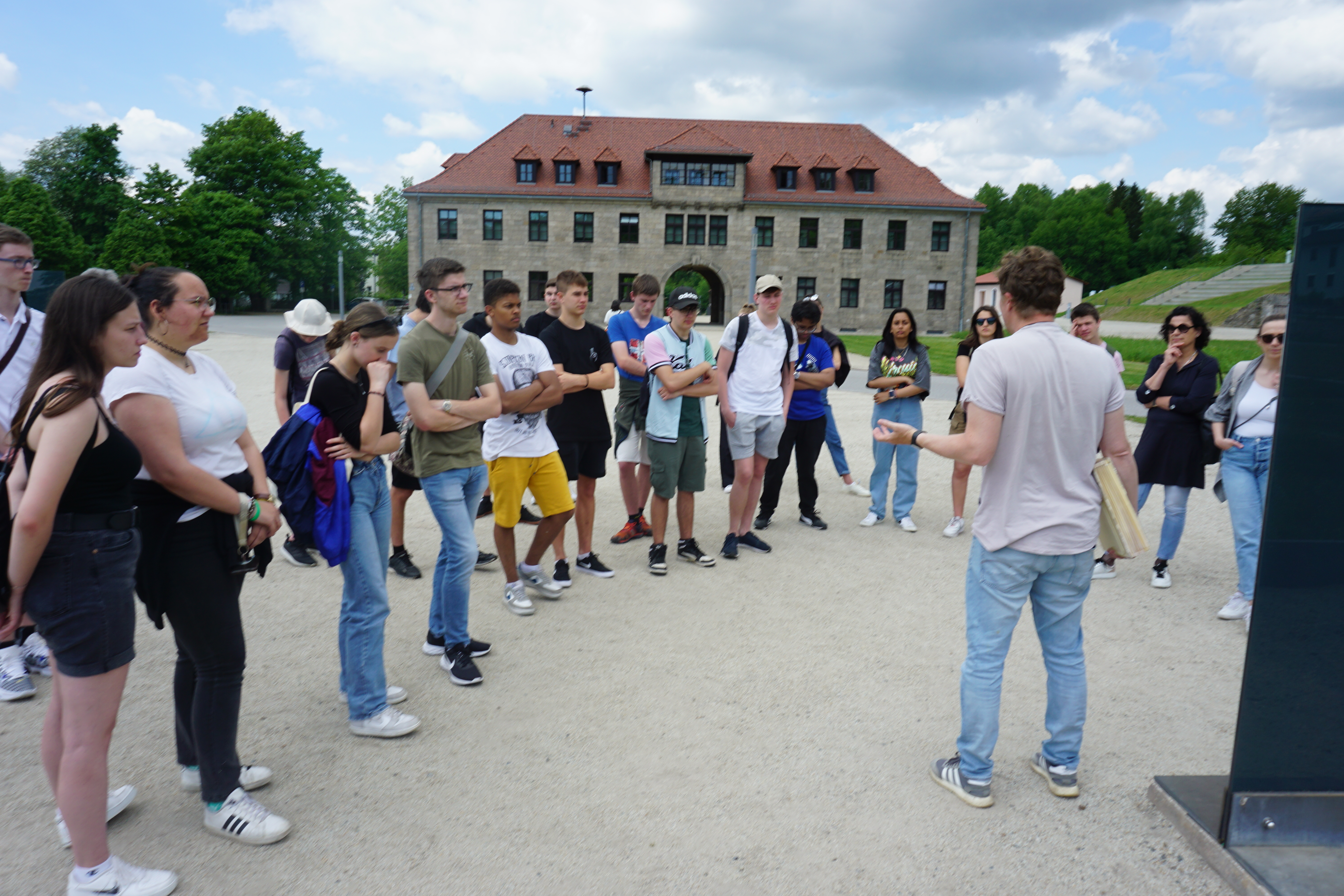 Der folgende Mittwoch führte mit dem Bus bis kurz vor die Grenze nach Tschechien, wo die Meraner Gäste in Begleitung der Ansbacher 11 IWa und der Lehrkräfte Kirsten Vates-Asheti, Christoph Göppner und Matthias Schmitz die Gedenkstätte des KZ Flossenbürg besuchten und bei einer Führung die Dimensionen des von den Nationalsozialisten etablierten Systems der Konzentrationslager erfuhren.