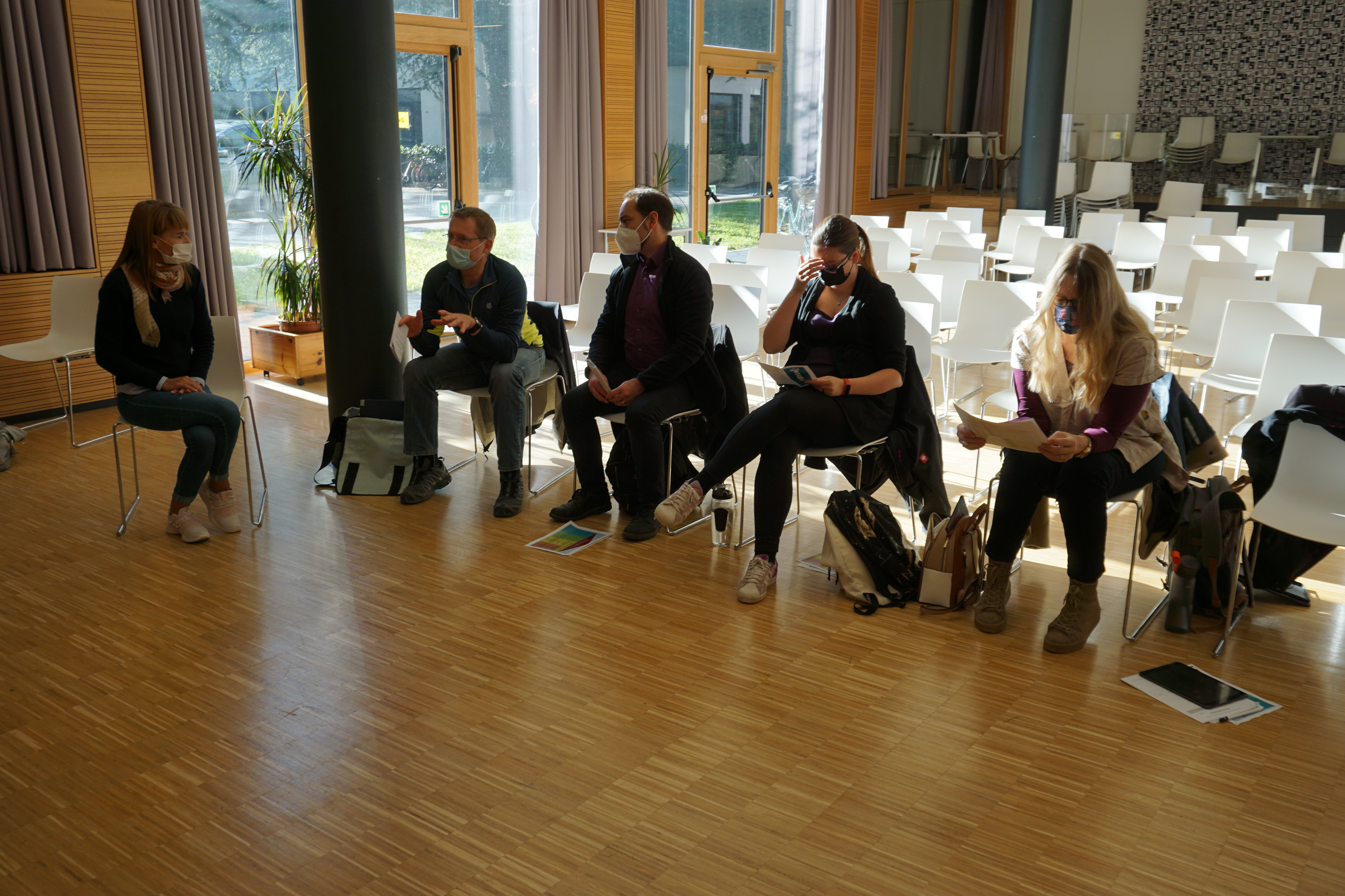 Ziel des Projektteils war die Erarbeitung eines Lernzirkels (= Lernkarussell) zum Thema 'Demokratie und Rechtsstaatlichkeit als Herausforderung in einem gemeinsamen Europa' durch Lehrer:innen beider Schulen, die in gemischten Teams, bestehend aus mindestens einer Person aus Meran und einer Person aus Ansbach, zusammenarbeiteten. Die Teams agierten sowohl in persönlichen Sitzungen während der Mobilitäten als auch in Online-Sitzungen miteinander.